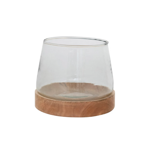 Hurricane Vase w/Mango Wood Base | 2 Sizes