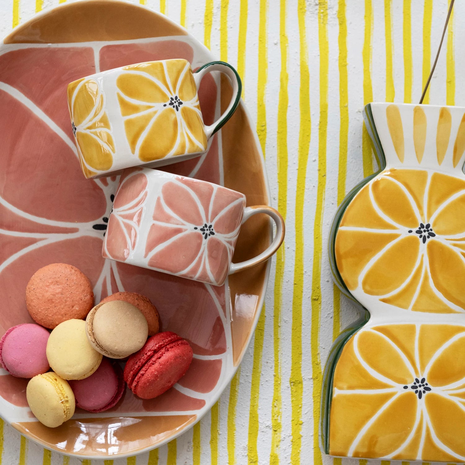 Handcrafted from durable stoneware, this 10 oz. mug features an elegant wax relief design that adds artisanal charm to your daily coffee or tea ritual. Choose between two distinctive styles to match your personal aesthetic and enjoy a piece that's both beautiful and built to last.