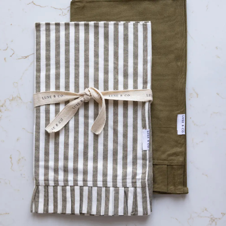Our Embroidery Ruffle Dish Towels come in a set of 2 and are made from high-quality materials. Perfect for drying dishes and spills, they add style to any kitchen. Keep your countertops clean and dry with these durable and elegant towels.