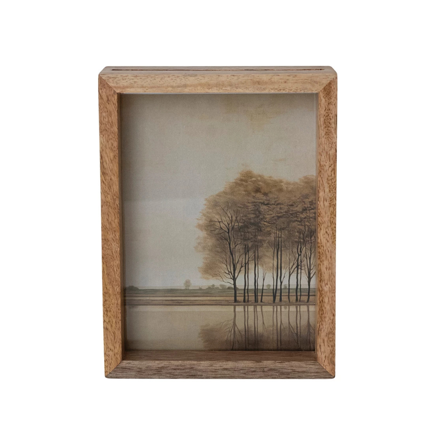 Display two cherished memories at once with this innovative floating two-sided photo frame crafted from warm mango wood and clear glass, designed to hold 5" x 7" photos. The natural wood grain adds organic warmth to any room while the glass panels create a modern, gallery-like presentation that works beautifully on desks, shelves, or nightstands. A thoughtful way to celebrate multiple moments or share photos with loved ones from every angle.