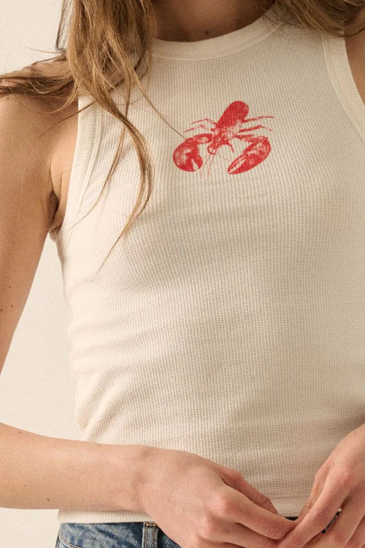 Crafted from 100% cotton, the Lobster Vintage-wash Graphic Racerback Tank Top offers breathable comfort and durability. Its vintage wash gives a timeless, worn-in look, while the racerback design ensures freedom of movement and a flattering fit. Ideal for layering or wearing solo, this tank combines classic style with expert craftsmanship.