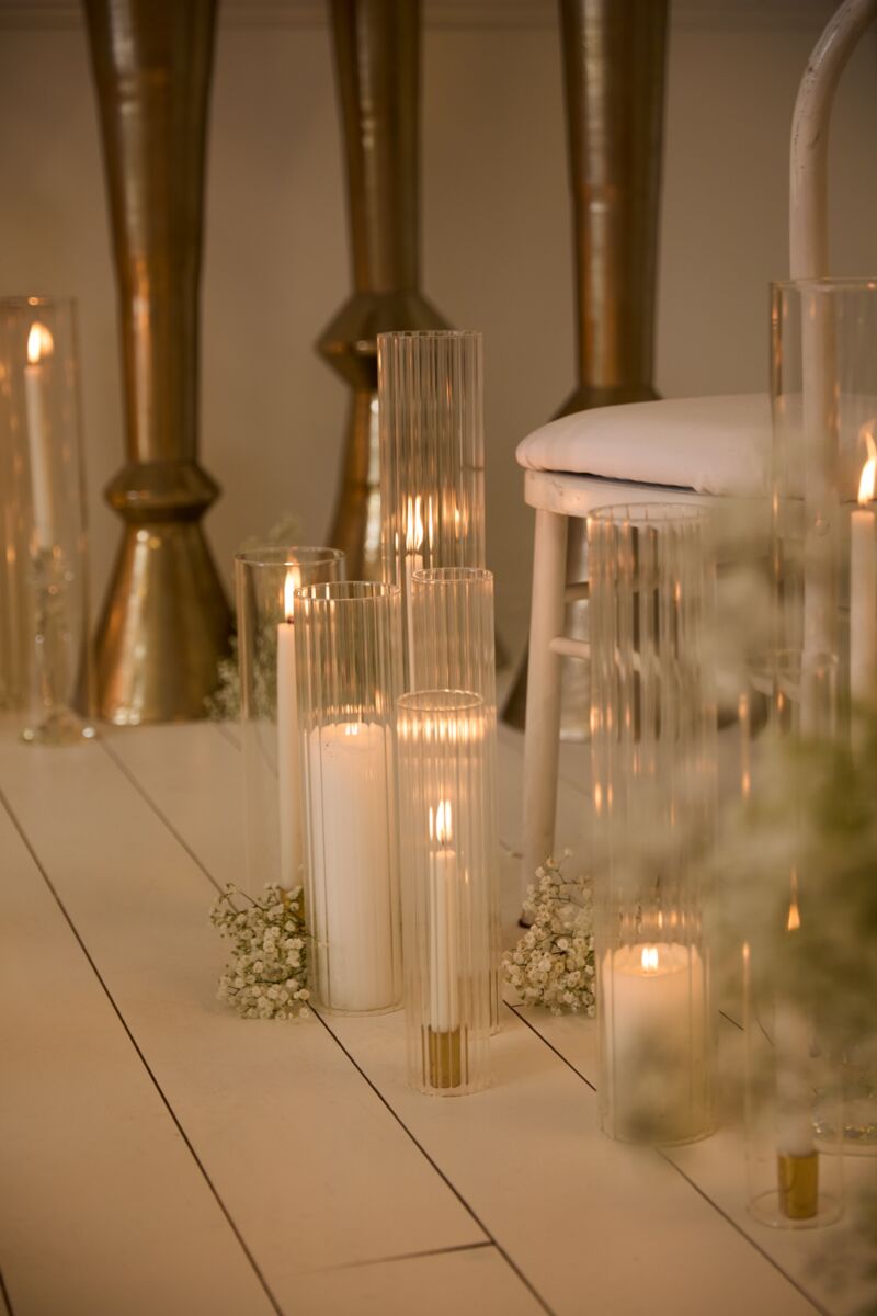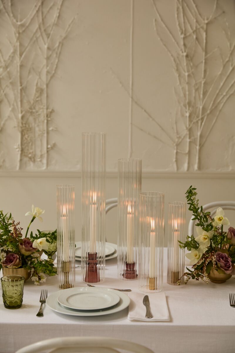 Pair this ribbed glass sleeve with candles & candlesticks to add visual interest to centerpieces. Designed in different heights & diameters for varying candle styles, these stunning sleeves provide the flame cover many event spaces require.