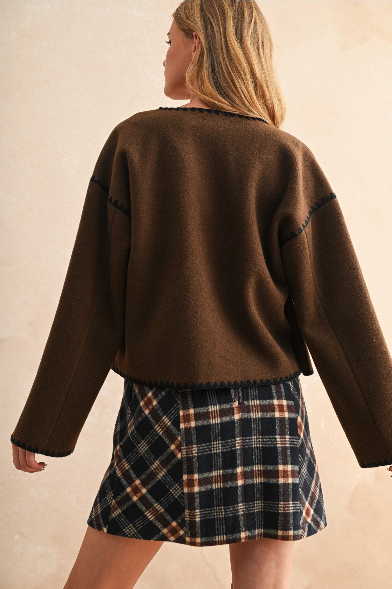 PATTERN STITCHED BUTTON CLOSURE JACKET * * Size & Fit * * * * * * * * * * * * * * * * Model is wearing size S Measurements taken from size S Height - 5' 7 1/2" / 175.3CM