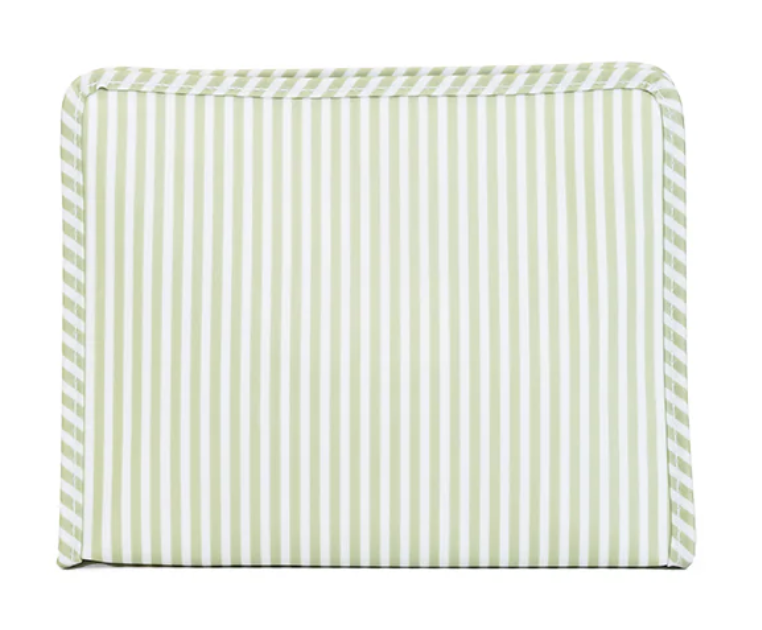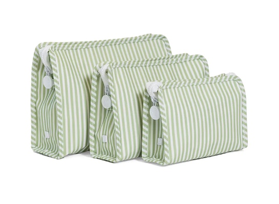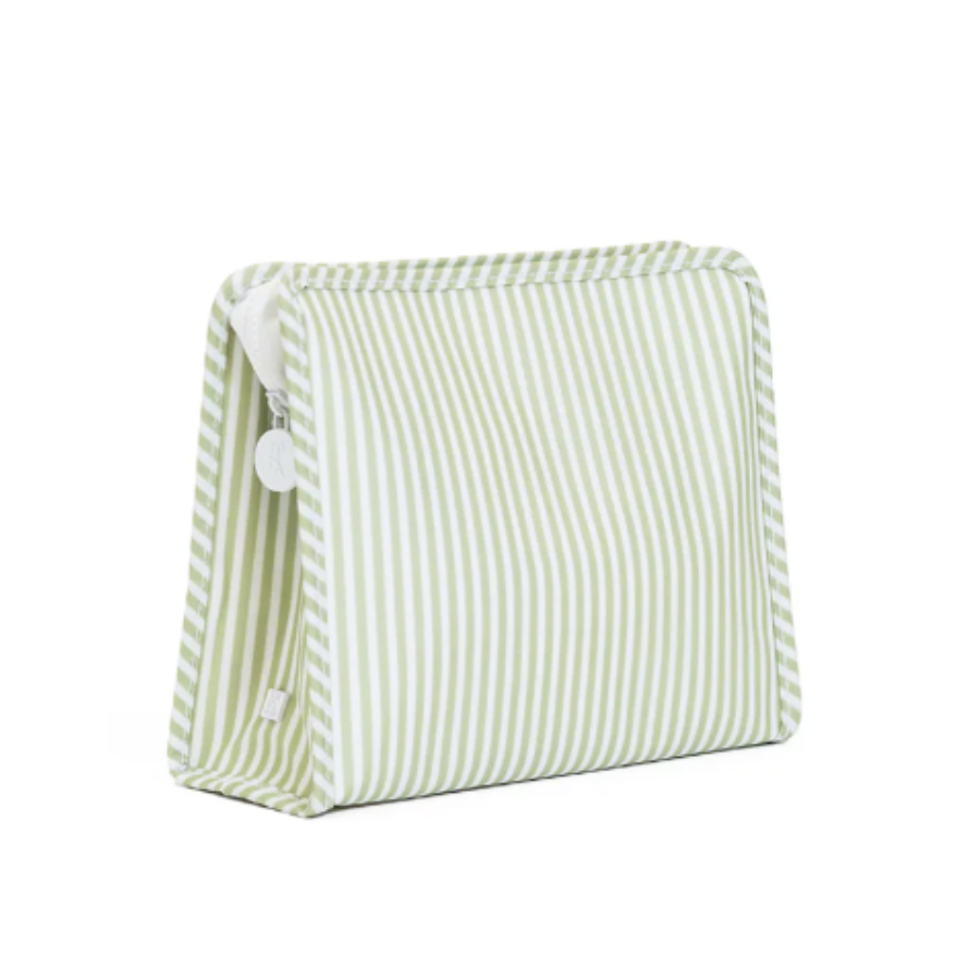Our best-selling Roadies are our BFFs in the pouch world! Available in 3 sizes, our Large Roadie is made in a cotton gingham with a thin Eco-friendly matte coating, an inside slip pocket and exterior snap open zip tabs for a wider opening and an easier access.