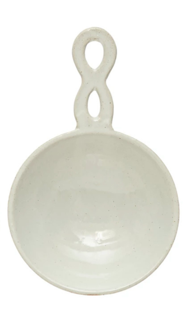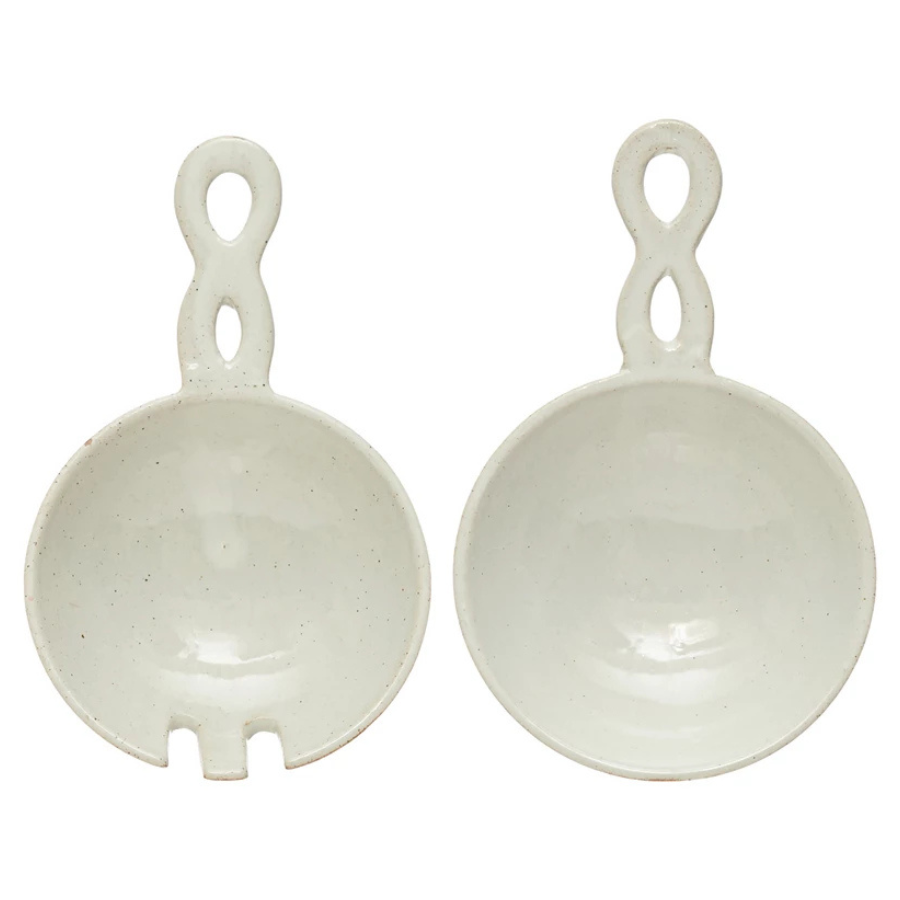 This stoneware server features a distinctive twisted handle design, available in two elegant styles to suit various dining settings. Crafted for both functionality and aesthetic appeal, it offers sturdy support for serving while adding a touch of artisanal sophistication to your table. Its durable construction ensures long-lasting use, making it an ideal choice for formal gatherings or everyday meals.