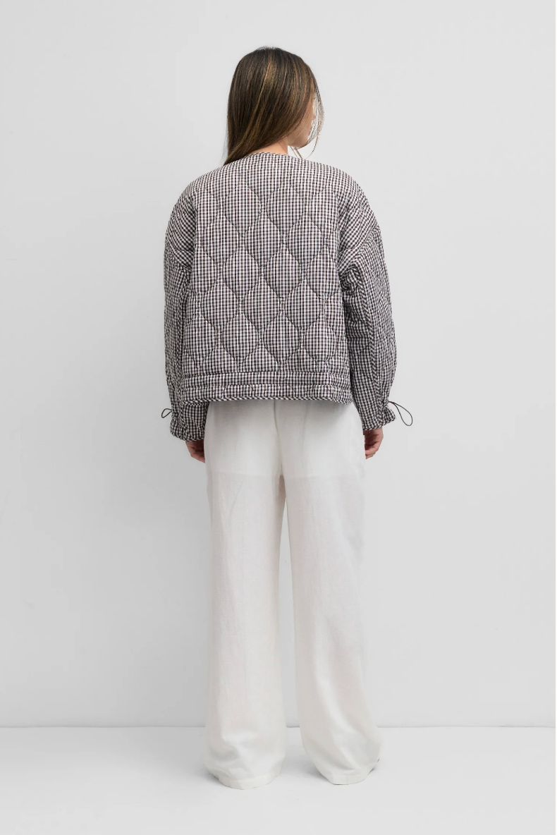 The Rochelle Jacket is a fresh take on the brands best-selling Kara Jacket designed with a buttery cotton fabrication and contrasting solid color lining. The jacket includes a zipper closure, hidden snap button placket, front patch pockets, and adjustable cords at the wrist and jacket hem making it the perfect blend of style and functionality.