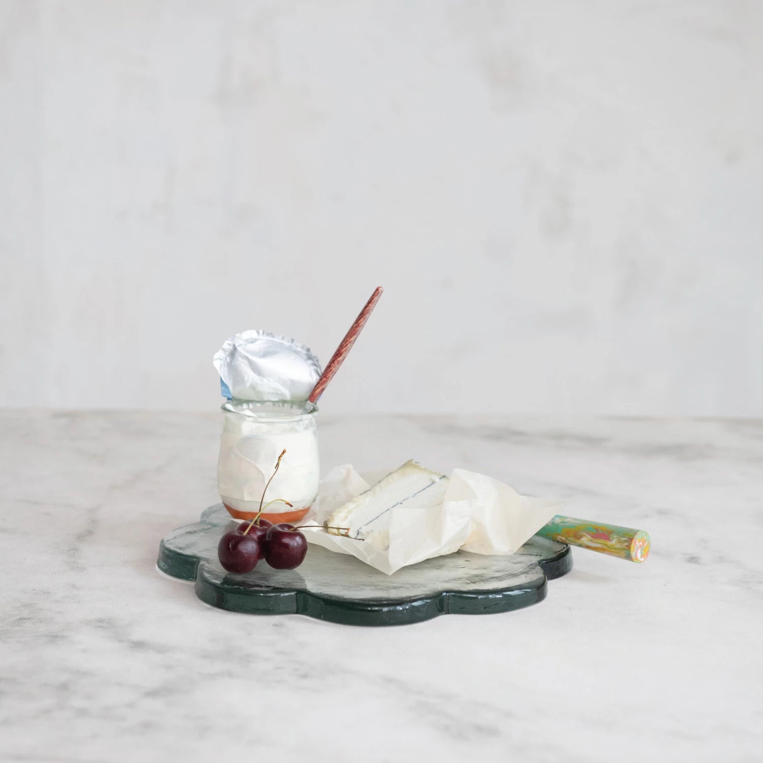 Elevate your entertaining with this elegant pressed glass serving board, featuring a charming scalloped edge that adds a touch of sophistication to any table setting. Perfect for cheese boards, charcuterie displays, or serving appetizers, this versatile piece combines timeless design with practical functionality for gatherings you'll love hosting.